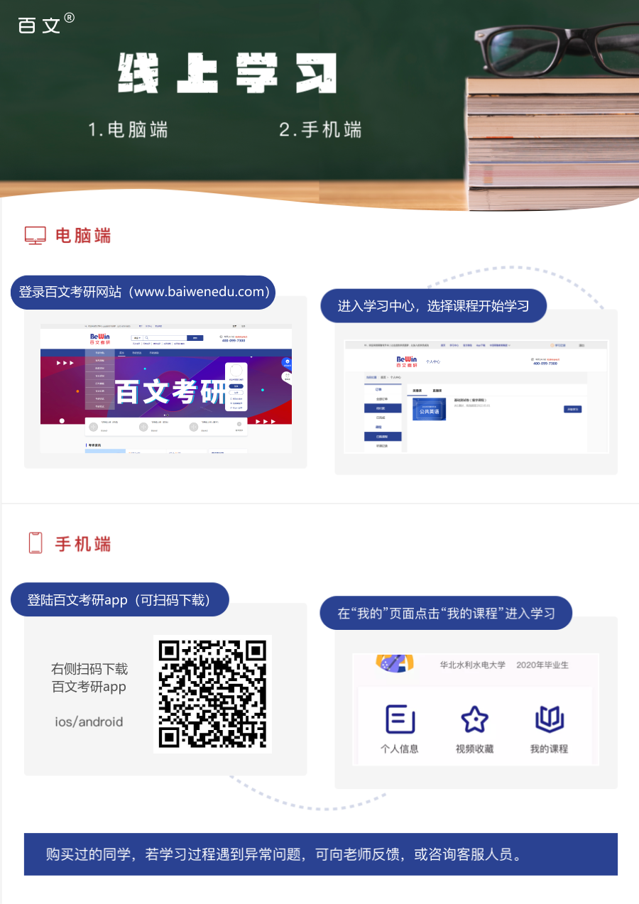 平台内所有课程均使用百文考研内部自编教材与讲义,基于原版教材精讲